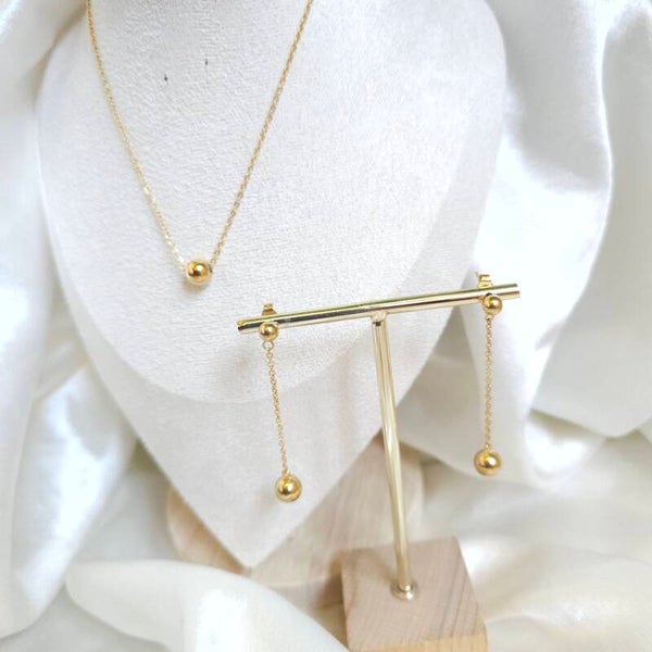 Collier et boucles d'oreilles boules suspendu en acier inoxydable.